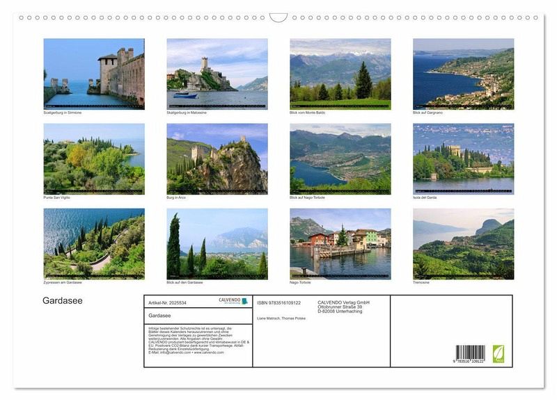 Genießen Sie mit diesem Kalender die Landschaften rund um den Gardasee. Bilder vom Gardasee, lieblichen Ortschaften und alten Burgen, eingebettet in die hohen Berge entführen in das milde Klima Norditaliens. Holen Sie sich mit diesem Kalender Urlaubserinnerungen nach Hause.