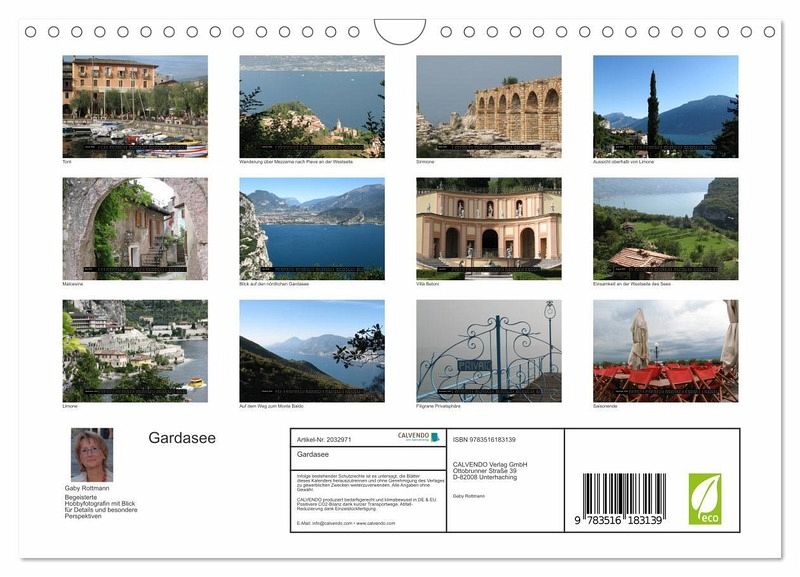 QUALITÄT - Hochwertiger Fotokalender mit 12 wunderschönen Motiven auf lichtbeständigem Bilderdruckpapier, robuste Spiralbindung mit Aufhängebügel.NACHHALTIG - deutliche Abfallreduzierung durch bedarfsgerechte Einzelstückfertigung, umweltfreundliches FSC-zertifiziertes Papier, Produktion in Deutschland, klimabewusste Logistik.PERFEKTES GESCHENK - Kalender für Freunde und Familie, für Kinder und Erwachsene, jung und alt, zu Weihnachten, Geburtstag oder zwischendurch.VIELFALT - Bildkalender in verschiedenen Formaten, z.B. DIN A5, DIN A4, DIN A3 sowie DIN A2. Ob Naturmotiv, Gemälde oder Fotos, ideal für ein persönliches Wohlfühlambiente.Der Gardasee, beliebtes Reiseziel in Norditalien von Autor(in): Gaby Rottmann