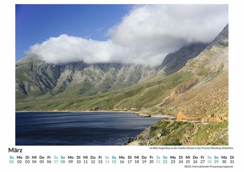 Entdecken Sie die atemberaubende Schönheit der Garden Route in Südafrika mit unserem exklusiven Wandkalender! Lassen Sie sich Monat für Monat von 12 sorgfältig ausgewählten Motiven verzaubern, die die faszinierende Natur und die malerischen Küstenlandschaften dieser weltberühmten Region einfangen. Gedruckt auf hochwertigem, lichtbeständigem Bilderdruckpapier, bringt dieser Kalender die Farbenpracht der Garden Route direkt in Ihr Zuhause. Nachhaltigkeit liegt uns am Herzen: Unsere Kalender werden in Deutschland auf FSC-zertifiziertem Papier produziert. Gönnen Sie sich oder Ihren Liebsten ein Stück Südafrika - perfekt als Geschenk oder für die eigene Wand! Hochwertig Erleben Sie ein Jahr voller Eleganz mit unserem Premium-Fotokalender. Jedes der 12 Motive ist auf hochwertigem, lichtbeständigem Bilderdruckpapier gedruckt, um die Lebendigkeit jedes Bildes zu bewahren. Die robuste Spiralbindung gewährleistet Langlebigkeit und einfache Handhabung. Nachhaltig Unser Engagement für die Umwelt spiegelt sich in jedem Exemplar wider. Durch die Produktion auf Abruf reduzieren wir signifikant unseren Abfall. Wir verwenden ausschließlich umweltfreundliches, FSC-zertifiziertes Papier. Stolz gefertigt in Deutschland, achten wir bei unserer Logistik auf Klimaschutz, um unseren ökologischen Fußabdruck zu minimieren. Das ideale Geschenk Dieser Kalender ist das perfekte Präsent für jeden Anlass - ob Weihnachten, Geburtstage oder einfach als liebevolle Aufmerksamkeit zwischendurch. Geeignet für Freunde, Familie, Kinder und Erwachsene gleichermaßen, bereichert er jedes Zuhause mit seiner Vielfalt und Schönheit, unabhängig vom Alter der Beschenkten.