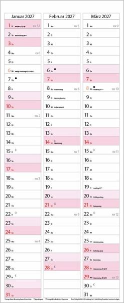 Weitere Informationen wie Mondphasen, Ferientermine und Feiertage (auch regionale) sowie deutlich lesbare Kalenderwochen runden den Kalender ab und sorgen für einen vollständigen Überblick Ihres Jahres.