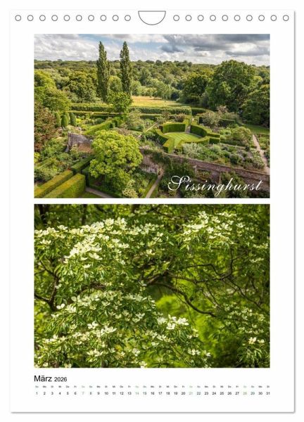 Entdecken Sie Englands romantische Gärten mit ihren verschlungenen Wegen, Seen und alten Ruinen. Farbenprächtige Blumen, üppige Beete, Skulpturen oder Tempel laden Ihren Blick zum Verweilen ein. Dieser einzigartige Kalender zeigt Ihnen die schönsten Gartenparadiese in England, wie der Sissinghurst Castle Garden, Nymans Garden oder der Sheffield Park and Garden.