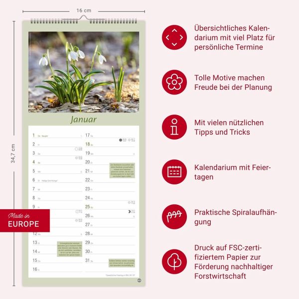 - Wie frisch geerntet im Garten: Kalender 2026 im Hochformat 16 x 34,7 cm mit Tipps fürs Gärtnern rund ums Beet und den Balkon- Pflanzen- und Blumen-Pracht passend für jede Wand: Kalender 2026 zum Eintragen- Monat für Monat schöne Garten-Fotos genießen: Wandplaner mit stimmungsvollen Motiven aus der Natur- Das ideale Geschenk für Gartenfreund:innen: Terminkalender für die Wand mit Bildern zum Thema Gärtnern- Für Hobby-Gärtner:innen und alle, die die Natur lieben: Foto-Kalender von Heye im Athesia Kalenderverlag