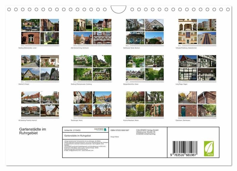 QUALITÄT - Hochwertiger Fotokalender mit 12 wunderschönen Motiven auf lichtbeständigem Bilderdruckpapier, robuste Spiralbindung mit Aufhängebügel.NACHHALTIG - deutliche Abfallreduzierung durch bedarfsgerechte Einzelstückfertigung, umweltfreundliches FSC-zertifiziertes Papier, Produktion in Deutschland, klimabewusste Logistik.PERFEKTES GESCHENK - Kalender für Freunde und Familie, für Kinder undErwachsene, jung und alt, zu Weihnachten, Geburtstag oder zwischendurch.VIELFALT - Bildkalender in verschiedenen Formaten, z.B. DIN A5, DIN A4, DIN A3 sowie DIN A2. Ob Naturmotiv, Gemälde oder Fotos, ideal für ein persönliches Wohlfühlambiente.12 Arbeitersiedlungen im Ruhrgebiet präsentiert in jeweils 4 Fotografien von Autor(in): Ansgar Meise