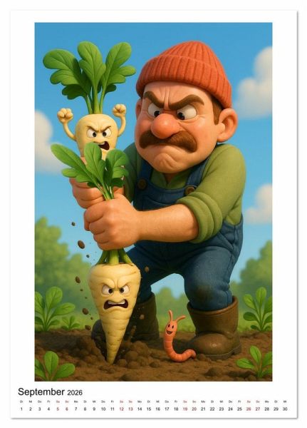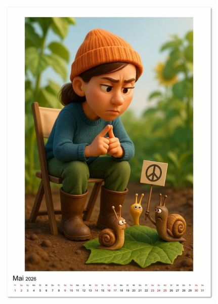 Willkommen in einer Welt, in der Gärtner das Sagen haben - liebevoll-chaotisch, grünverrückt und herrlich eigenwillig. Dieser humorvolle Kalender zeigt schräge, charmante Gartenszenen, erschaffen mit Hilfe künstlicher Intelligenz. Ob Schnecken-Schlachten, Gießkannen-Gefechte oder Gemüse-Rituale - hier gelten eigene Gesetze. Perfekt für alle, die ihren Garten lieben und gern über sich selbst lachen.