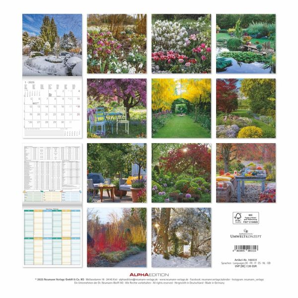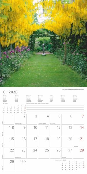 Dieser schöne Wandkalender (aufgeklappt 30 x 60 cm) ist ideal für alle, die prachtvolle Gärten lieben. Ob als Anregung für Hobbygärtner oder ganz einfach nur zum Träumen - der Kalender Gartenzauber 2026 bietet dank wunderbarer Fotografien im Format von 30 x 30 cm Inspiration für jeden Natur- und Gartenfreund.