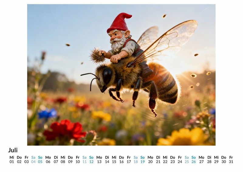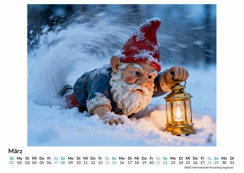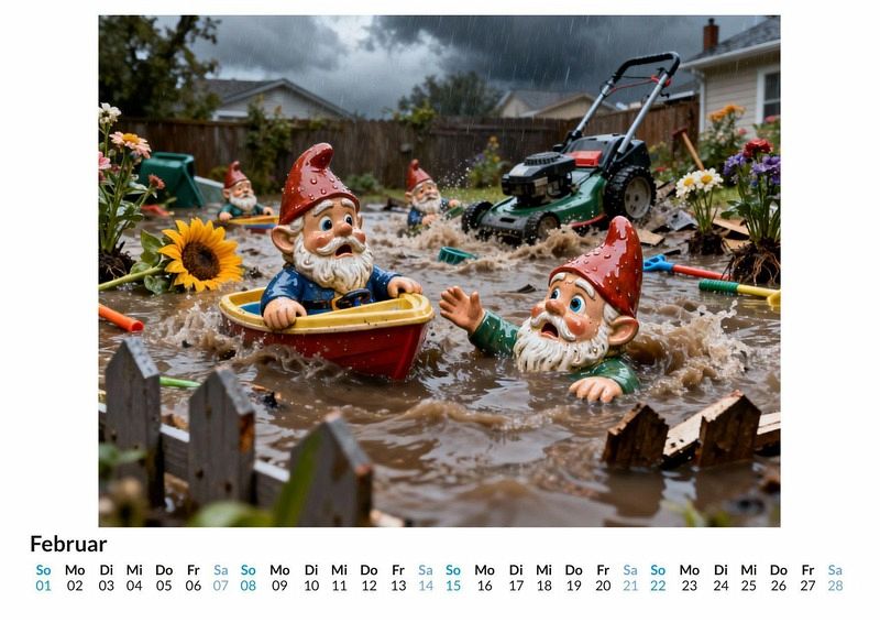 Hinter der Fassade friedlicher Vorgärten verbirgt sich eine Welt voller unerwarteter Abenteuer. Was geschieht, wenn die Nacht hereinbricht oder der Rasen für einen Moment unbeobachtet bleibt? Der Kalender "Gartenzwerge in Extremsituationen" dokumentiert das geheime Leben der kleinen Keramikfiguren, wenn sie aus ihrem starren Alltag ausbrechen und sich dem Chaos stellen. Dieser Kalender ist die ideale Wahl: * Für Menschen mit einem Sinn für skurrilen Humor. * Für Liebhaber von Gartenzwergen, die eine neue Seite an ihnen entdecken wollen. * Für alle, die ein originelles Geschenk suchen, das für Gesprächsstoff sorgt. Zwölf sorgfältig inszenierte Monatsmotive zeigen die Zwerge in Situationen, die man so nicht erwartet. Ob bei einer ausgelassenen Poolparty mit Flamingo Schwimmtieren, während eines Angriffs durch eine riesenhafte Katze im Godzilla Stil oder auf der dramatischen Flucht vor einem unaufhaltsamen Rasenmäher. Die Szenen entspringen einer kreativen Symbiose aus menschlicher Idee und der Rechenleistung fortschrittlicher Bildsynthese, wodurch jeder Moment lebendig wirkt. Jedes Foto erzählt eine eigene kleine Geschichte voller Dramatik und Witz. Beim Kauf dieses Kalenders kann man Folgendes erwarten: * Zwölf Monatsblätter mit einzigartigen Motiven. * Ein praktisches Kalendarium für die Organisation des Jahres. * Ein ganzes Jahr voller amüsanter Anblicke. Dieser Kalender ist mehr als nur ein Zeitplaner; er ist ein monatlicher Einblick in eine fantastische Parallelwelt, die direkt vor der eigenen Haustür stattfinden könnte. Eine Entdeckungsreise durch die zwölf außergewöhnlichen Abenteuer der Gartenzwerge wartet.