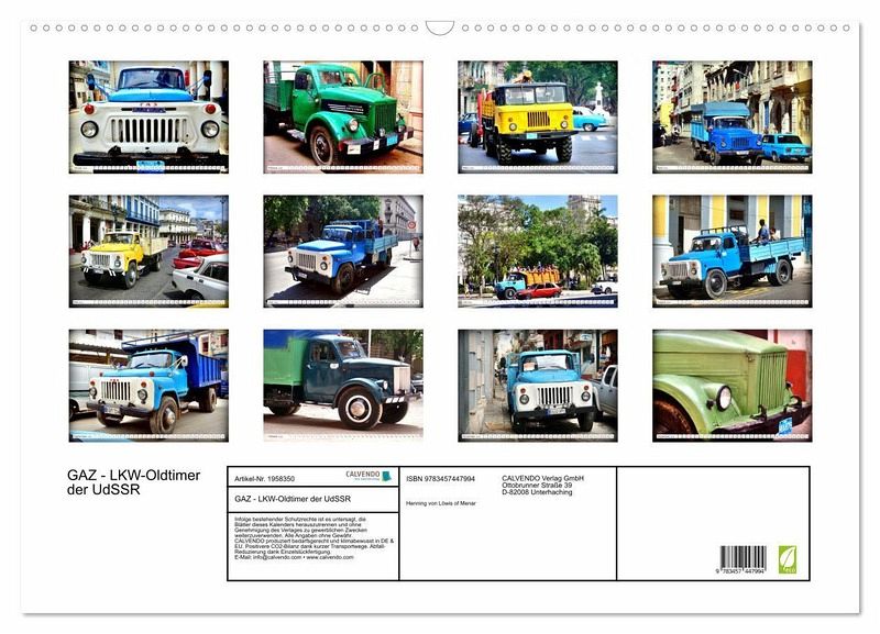 QUALITÄT - Hochwertiger Fotokalender mit 12 wunderschönen Motiven auf lichtbeständigem Bilderdruckpapier, robuste Spiralbindung mit Aufhängebügel.NACHHALTIG - deutliche Abfallreduzierung durch bedarfsgerechte Einzelstückfertigung, umweltfreundliches FSC-zertifiziertes Papier, Produktion in Deutschland, klimabewusste Logistik.PERFEKTES GESCHENK - Kalender für Freunde und Familie, für Kinder und Erwachsene, jung und alt, zu Weihnachten, Geburtstag oder zwischendurch.VIELFALT - Bildkalender in verschiedenen Formaten, z.B. DIN A5, DIN A4, DIN A3 sowie DIN A2. Ob Naturmotiv, Gemälde oder Fotos, ideal für ein persönliches Wohlfühlambiente.Lastkraftwagen der sowjetischen Marke GAZ in Kuba von Autor(in): Henning von Loewis of Menar
