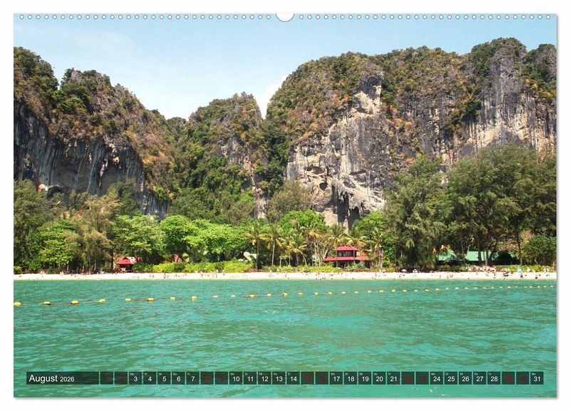 August: Kalksteinkegel, Railay Beach, Krabi, Thailand