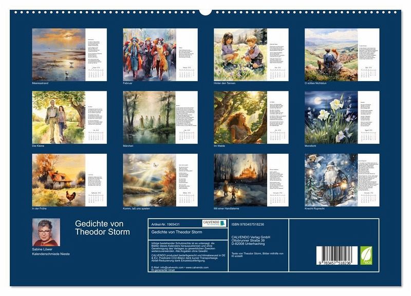 PREMIUM-LINIE - Brillanter Fotokalender mit 12 wunderschönen Motiven, Kunstdruck in Hochglanz in Museumsqualität.QUALITÄT - edle Materialien, stabile Rückwand mit 2 innovativen Einstecktaschen für eine optimale Präsentation an der Wand.NACHHALTIG - deutliche Abfallreduzierung durch bedarfsgerechte Einzelstückfertigung, umweltfreundliches FSC-zertifiziertes Papier, Produktion in Deutschland, klimabewusste Logistik.PERFEKTES GESCHENK - Kalender für Freunde und Familie, für Kinder und Erwachsene, jung und alt, zu Weihnachten, Geburtstag oder zwischendurch.Aquarellbilder setzen die Gedichte in Szene von Autor(in): Sabine Löwer