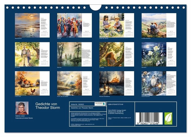 QUALITÄT - Hochwertiger Fotokalender mit 12 wunderschönen Motiven auf lichtbeständigem Bilderdruckpapier, robuste Spiralbindung mit Aufhängebügel.NACHHALTIG - deutliche Abfallreduzierung durch bedarfsgerechte Einzelstückfertigung, umweltfreundliches FSC-zertifiziertes Papier, Produktion in Deutschland, klimabewusste Logistik.PERFEKTES GESCHENK - Kalender für Freunde und Familie, für Kinder und Erwachsene, jung und alt, zu Weihnachten, Geburtstag oder zwischendurch.VIELFALT - Bildkalender in verschiedenen Formaten, z.B. DIN A5, DIN A4, DIN A3 sowie DIN A2. Ob Naturmotiv, Gemälde oder Fotos, ideal für ein persönliches Wohlfühlambiente.Aquarellbilder setzen die Gedichte in Szene von Autor(in): Sabine Löwer