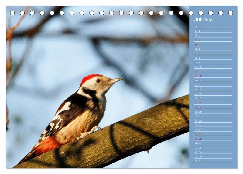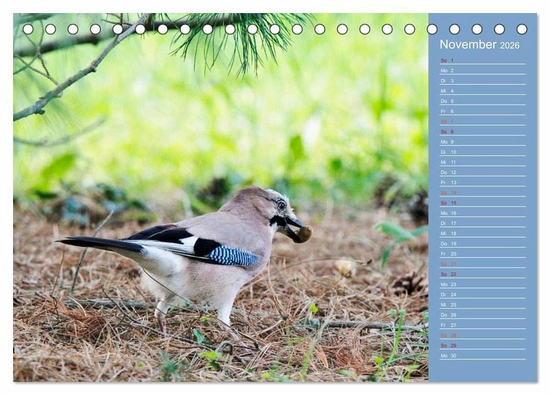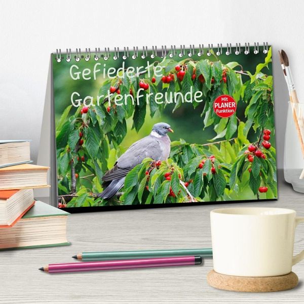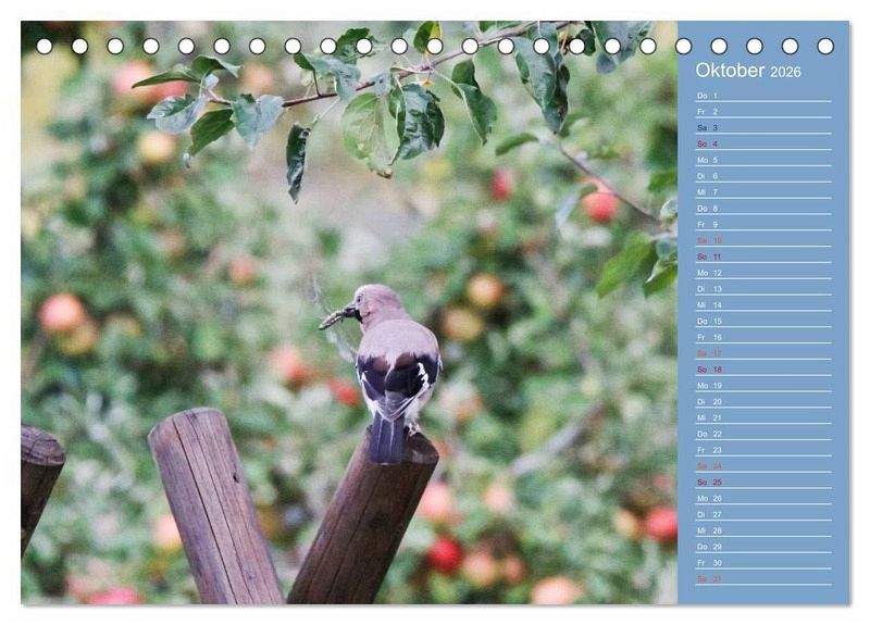 Ein Kalender mit Planer, der farbige Bilder von heimischen Vögeln zeigt, die wir gern im Garten und im Park beobachten.