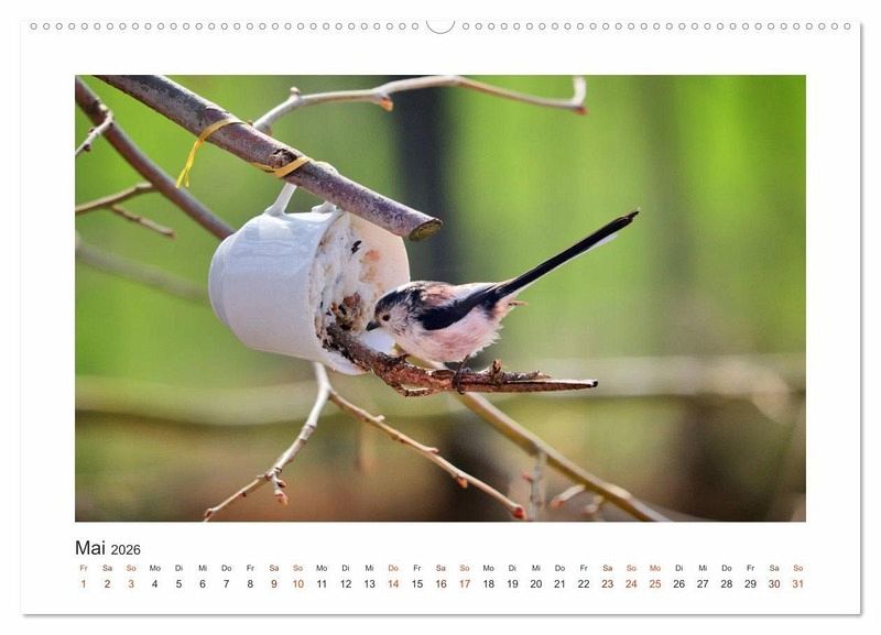 Sie turnen von Zweig zu Zweig, selbst die feinsten Ästchen werden nicht ausgelassen. Der lange Schwanz hilft da ausgezeichnet beim Balancieren. Nicht umsonst haben die kleinen Kerlchen den Namen Schwanzmeise verdient. Freuen Sie sich jeden Monat auf ein entzückendes Foto der liebenswerten Vögelchen.