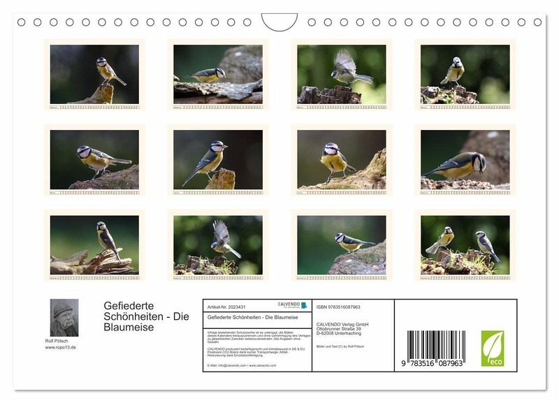 QUALITÄT - Hochwertiger Fotokalender mit 12 wunderschönen Motiven auf lichtbeständigem Bilderdruckpapier, robuste Spiralbindung mit Aufhängebügel.NACHHALTIG - deutliche Abfallreduzierung durch bedarfsgerechte Einzelstückfertigung, umweltfreundliches FSC-zertifiziertes Papier, Produktion in Deutschland, klimabewusste Logistik.PERFEKTES GESCHENK - Kalender für Freunde und Familie, für Kinder und Erwachsene, jung und alt, zu Weihnachten, Geburtstag oder zwischendurch.VIELFALT - Bildkalender in verschiedenen Formaten, z.B. DIN A5, DIN A4, DIN A3 sowie DIN A2. Ob Naturmotiv, Gemälde oder Fotos, ideal für ein persönliches Wohlfühlambiente.Die Blaumeise, eine gefiederte Schönheit die der Fotograf Rolf Pötsch in dreizehn verschiedenen Nahaufnahmen festgehalten hat. von Autor(in): ropo13