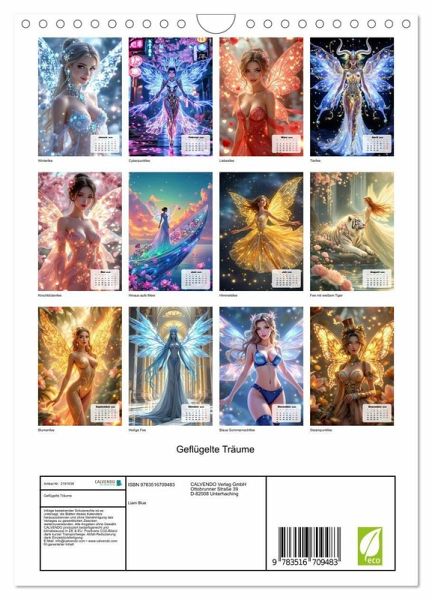 Entdecke mit "Geflügelte Träume" eine magische Welt jenseits des Alltags! Zwölf KI-generierte Kalenderbilder zeigen strahlende Feen, die in leuchtenden Farben, glitzerndem Licht und märchenhafter Anmut erstrahlen. Lass dich von fantasievollen Kompositionen und zauberhaften Motiven begleiten - voller Hoffnung, Magie und Wohlgefühl. Perfekt für alle, die sich jeden Monat von Licht und Fantasie inspirieren lassen möchten.