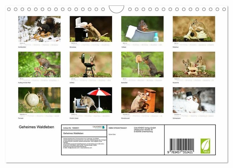 QUALITÄT - Hochwertiger Fotokalender mit 12 wunderschönen Motiven auf lichtbeständigem Bilderdruckpapier, robuste Spiralbindung mit Aufhängebügel.NACHHALTIG - deutliche Abfallreduzierung durch bedarfsgerechte Einzelstückfertigung, umweltfreundliches FSC-zertifiziertes Papier, Produktion in Deutschland, klimabewusste Logistik.PERFEKTES GESCHENK - Kalender für Freunde und Familie, für Kinder und Erwachsene, jung und alt, zu Weihnachten, Geburtstag oder zwischendurch.VIELFALT - Bildkalender in verschiedenen Formaten, z.B. DIN A5, DIN A4, DIN A3 sowie DIN A2. Ob Naturmotiv, Gemälde oder Fotos, ideal für ein persönliches Wohlfühlambiente.Eichhörnchen und Mäuse in Szene gesetzt von Autor(in): Sylvia Süss
