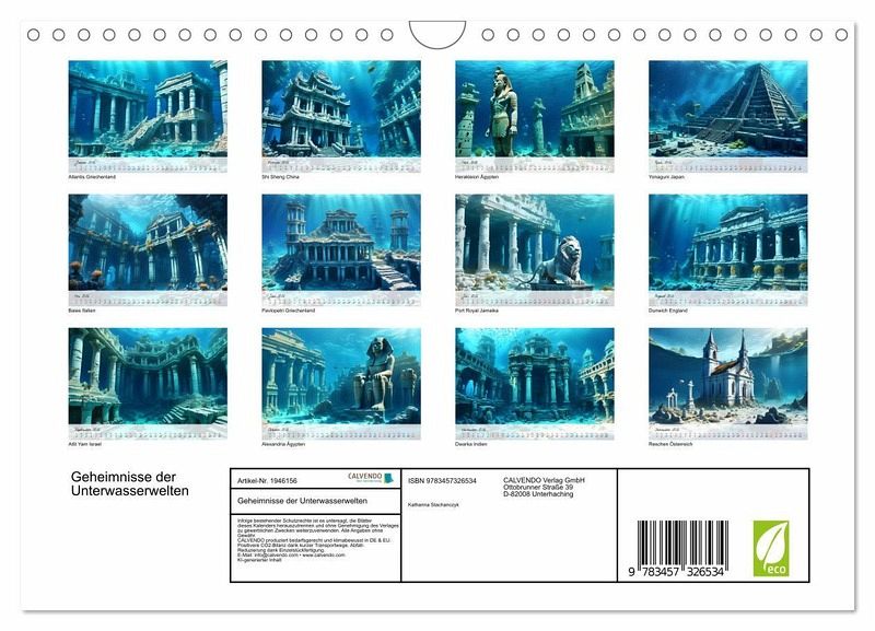 QUALITÄT - Hochwertiger Fotokalender mit 12 wunderschönen Motiven auf lichtbeständigem Bilderdruckpapier, robuste Spiralbindung mit Aufhängebügel.NACHHALTIG - deutliche Abfallreduzierung durch bedarfsgerechte Einzelstückfertigung, umweltfreundliches FSC-zertifiziertes Papier, Produktion in Deutschland, klimabewusste Logistik.PERFEKTES GESCHENK - Kalender für Freunde und Familie, für Kinder und Erwachsene, jung und alt, zu Weihnachten, Geburtstag oder zwischendurch.VIELFALT - Bildkalender in verschiedenen Formaten, z.B. DIN A5, DIN A4, DIN A3 sowie DIN A2. Ob Naturmotiv, Gemälde oder Fotos, ideal für ein persönliches Wohlfühlambiente.Tauchen Sie ein in die faszinierenden Unterwasserwelten und entdecken Sie jeden Monat eine neue, atemberaubende versunkene Stadt. von Autor(in): Katharina Stachanczyk