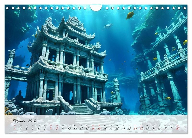 Begeben Sie sich auf eine faszinierende Entdeckungsreise mit dem Kalender "Geheimnisse der Unterwasserwelten: Entdeckungsreise zu versunkenen Städten". Jeden Monat präsentiert dieser atemberaubende Kalender ein neues, spektakuläres KI-Bild von längst vergessenen, versunkenen Städten. Lassen Sie sich von der Schönheit und dem Mysterium dieser untergegangenen Metropolen verzaubern und tauchen Sie in die Geschichte und Legenden ein, die diese geheimnisvollen Orte umgeben. Ideal für Geschichtsliebhaber, Abenteurer und Träumer. Dieser Kalender bringt die Wunder der Tiefsee direkt in Ihr Zuhause oder Büro.