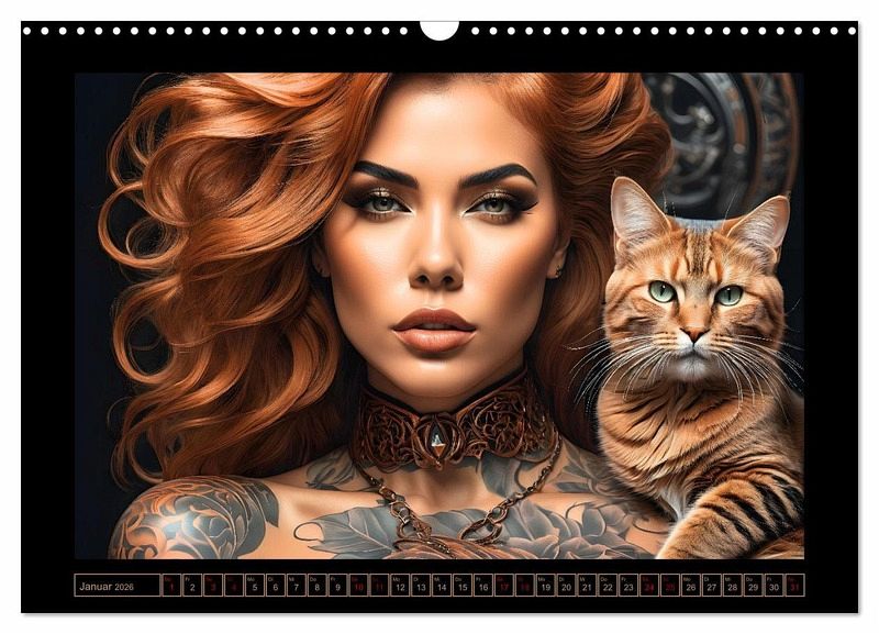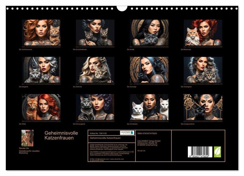 Erlebe magische Momente zwischen Katzen und Frauen. Jeder Monat enthüllt ein anderes, kunstvolles Porträt bezaubernder Samtpfoten und charismatischer Frauen voller Anmut und Charme. Die Porträts fangen nicht nur die Persönlichkeit und Vertrautheit des abgebildeten Paares ein, sondern erwärmen auch die Herzen von allen Katzenliebhabern auf der ganzen Welt. Dieser außergewöhnliche, mithilfe von KI erstellte Katzen-Kalender von Renate Utz ist ein Kunstwerk, das die Liebe zu den Stubentigern zelebriert. Das passende Geschenk für alle, die nicht nur der magischen Anziehungskraft von Katzen verfallen sind, sondern auch Sinn für Stil und Eleganz haben. Ein Jahr voller Katzenzauber beginnt! Dieser qualitativ hochwertige Kalender gehört zur exklusiven CALVENDO Gold-Edition.
