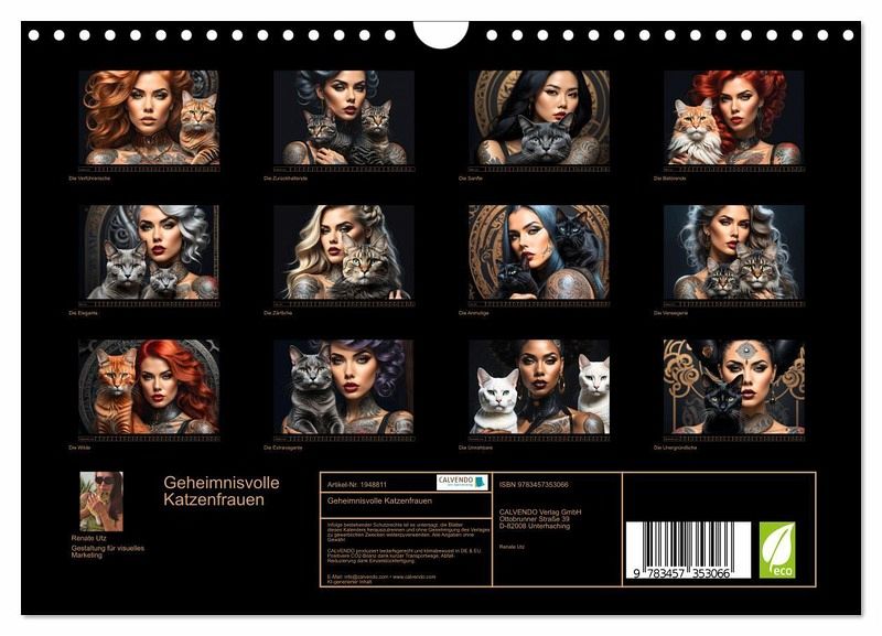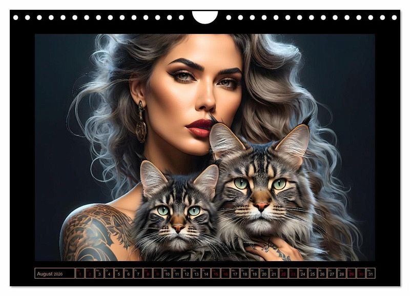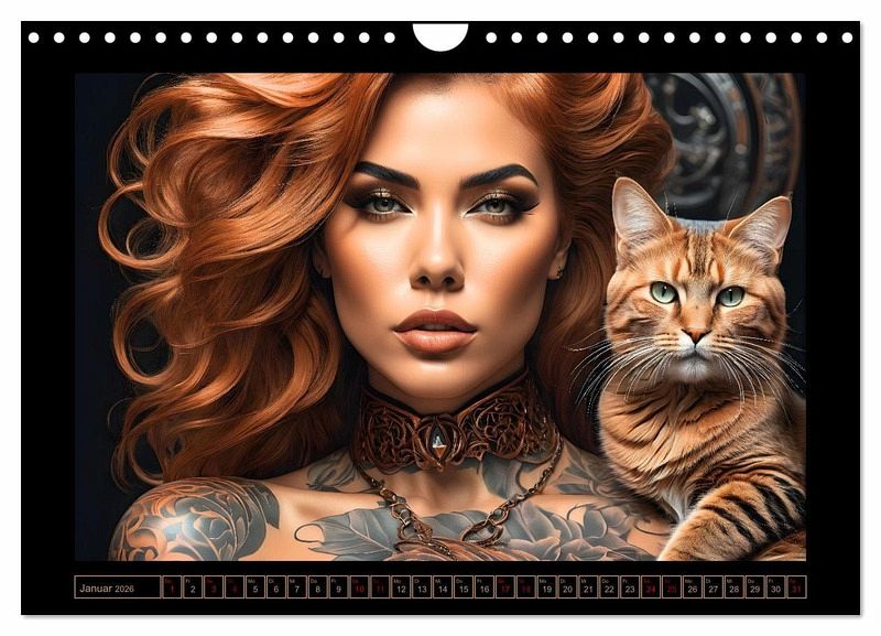 Erlebe magische Momente zwischen Katzen und Frauen. Jeder Monat enthüllt ein anderes, kunstvolles Porträt bezaubernder Samtpfoten und charismatischer Frauen voller Anmut und Charme. Die Porträts fangen nicht nur die Persönlichkeit und Vertrautheit des abgebildeten Paares ein, sondern erwärmen auch die Herzen von allen Katzenliebhabern auf der ganzen Welt. Dieser außergewöhnliche, mithilfe von KI erstellte Katzen-Kalender von Renate Utz ist ein Kunstwerk, das die Liebe zu den Stubentigern zelebriert. Das passende Geschenk für alle, die nicht nur der magischen Anziehungskraft von Katzen verfallen sind, sondern auch Sinn für Stil und Eleganz haben. Ein Jahr voller Katzenzauber beginnt! Dieser qualitativ hochwertige Kalender gehört zur exklusiven CALVENDO Gold-Edition.