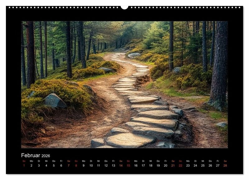 Mit atemberaubenden Bildern nimmt Sie dieser Kalender Monat für Monat mit auf eine Reise durch faszinierende Landschaften - mal mystisch und verträumt, mal rau und abenteuerlich. Jedes atemberaubende KI-Bild erzählt eine Geschichte. Manche Wege führen in dichte, von Nebel durchzogene Urwälder, andere schlängeln sich an schwindelerregenden Bergkanten entlang. Es gibt Pfade, die in uralte Zeiten zu gehören scheinen, durch steinerne Bögen verlaufen oder sich zwischen sanften Hügeln verlieren - als würden sie ins Nirgendwo führen. Ein perfektes Geschenk für Entdecker, Träumer und alle, die sich von der Schönheit unbekannter Wege inspirieren lassen möchten.