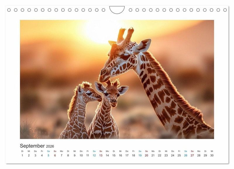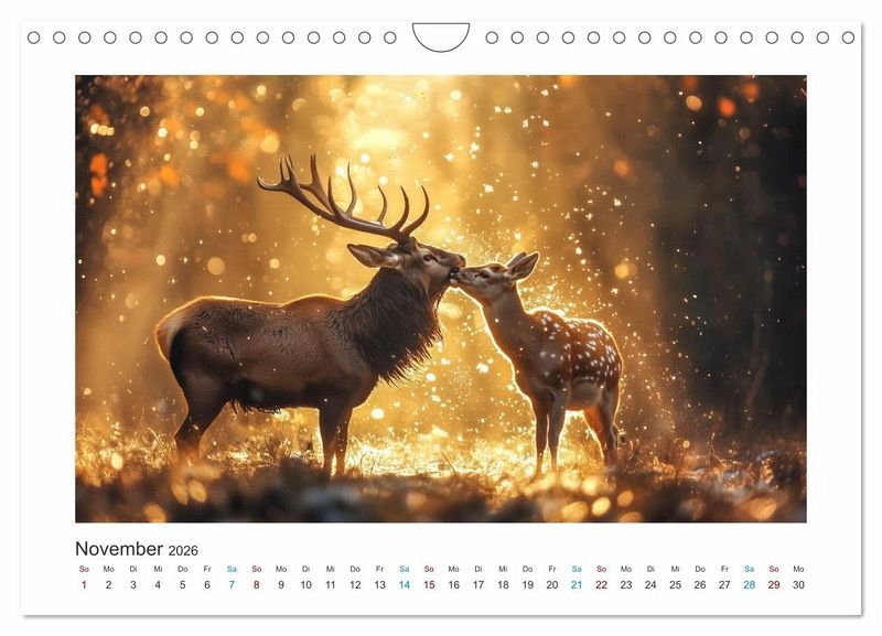 Willkommen in der endlosen Weite der Savanne, wo die Natur ihre kraftvollste und zugleich magischste Seite offenbart. Hier, wo die Sonne golden über die Steppe taucht und der Wind uralte Geschichten flüstert, entfaltet sich das größte Schauspiel des Lebens: Wildlife in seiner reinsten Form. Erlebe den Herzschlag der Natur, wenn Löwen durch das hohe Gras schleichen, Elefantenherden majestätisch durch die Ebenen ziehen und Giraffen an den Baumkronen zupfen, als würden sie den Himmel berühren. Der Moment wenn Hirsche morgens im Nebel stehen ist ein episches Abenteuer. Alle hier gezeigten Bilder wurden mit Sorgfalt, Liebe und mit Hilfe einer KI generiert. Abschließend werden sie mit Bildbearbeitungsprogrammen überarbeitet und in den Kalender eingefügt.