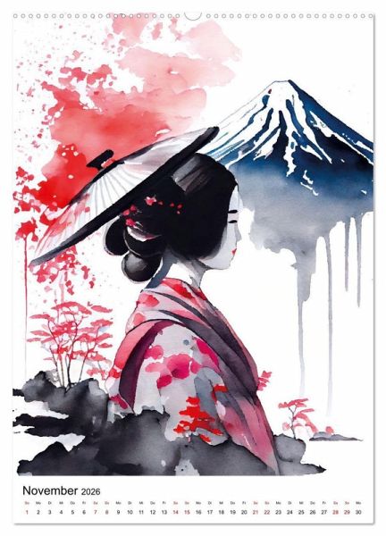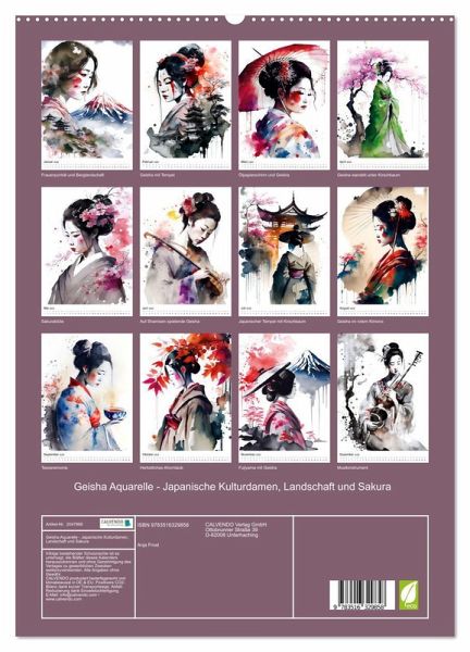 Der Geisha Aquarell-Kalender aus handgemalten Zeichnungen zeigt japanische Kulturdamen, Sakura, Tempeln & Landschaften für jeden Monat. Dieser Kalender ein perfektes Geschenk für alle, die japanische Kunst und Kultur lieben. Bestellen Sie jetzt und bereichern Sie Ihren Alltag mit einem einzigartigen Kunstwerk.