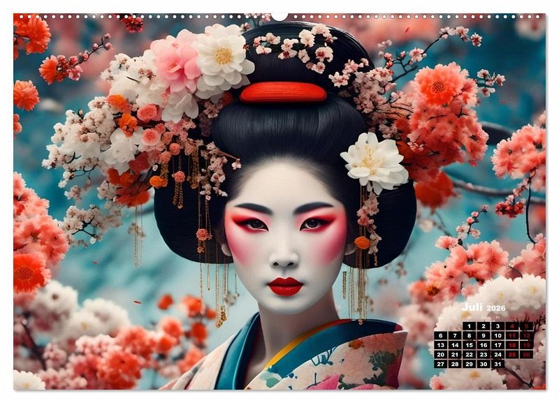 Lassen Sie sich jeden Monat von der Anmut und Schönheit der Geishas verzaubern, die meisterhaft in verschiedenen Naturkulissen dargestellt werden. Die KI-generierten Bilder bieten eine perfekte Illusion von Realität und fangen die Essenz der traditionellen japanischen Kultur in jeder Jahreszeit ein. Dieser Kalender zeigt faszinierende, KI-erstellte Darstellungen von Geishas in harmonischer Verbindung mit der Natur, die so real wirken, als wären sie fotografiert.