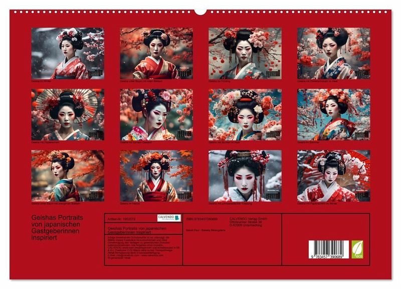 PREMIUM-LINIE - Brillanter Fotokalender mit 12 wunderschönen Motiven, Kunstdruck in Hochglanz in Museumsqualität.QUALITÄT - edle Materialien, stabile Rückwand mit 2 innovativen Einstecktaschen für eine optimale Präsentation an der Wand.NACHHALTIG - deutliche Abfallreduzierung durch bedarfsgerechte Einzelstückfertigung, umweltfreundliches FSC-zertifiziertes Papier, Produktion in Deutschland, klimabewusste Logistik.PERFEKTES GESCHENK - Kalender für Freunde und Familie, für Kinder und Erwachsene, jung und alt, zu Weihnachten, Geburtstag oder zwischendurch.KI-generierte Porträts, die die Schönheit der Geishas in verschiedenen Naturkulissen zeigen. von Autor(in): Babett's Bildergalerie