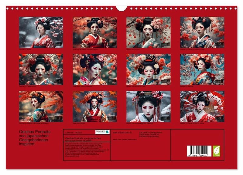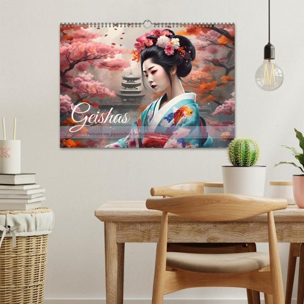 QUALITÄT - Hochwertiger Fotokalender mit 12 wunderschönen Motiven auf lichtbeständigem Bilderdruckpapier, robuste Spiralbindung mit Aufhängebügel.NACHHALTIG - deutliche Abfallreduzierung durch bedarfsgerechte Einzelstückfertigung, umweltfreundliches FSC-zertifiziertes Papier, Produktion in Deutschland, klimabewusste Logistik.PERFEKTES GESCHENK - Kalender für Freunde und Familie, für Kinder und Erwachsene, jung und alt, zu Weihnachten, Geburtstag oder zwischendurch.VIELFALT - Bildkalender in verschiedenen Formaten, z.B. DIN A5, DIN A4, DIN A3 sowie DIN A2. Ob Naturmotiv, Gemälde oder Fotos, ideal für ein persönliches Wohlfühlambiente.KI-generierte Porträts, die die Schönheit der Geishas in verschiedenen Naturkulissen zeigen. von Autor(in): Babett's Bildergalerie