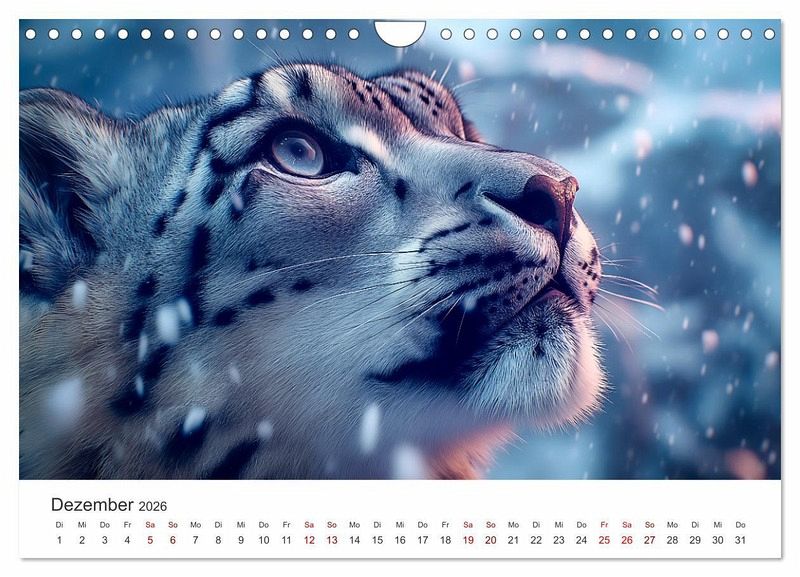Dieser KI-generierte Kalender nimmt dich mit in die stille, raue Welt der Schneeleoparden - jener faszinierenden Raubkatzen, die fast lautlos durch Schnee und Stein gleiten. Jede Seite zeigt ein einzigartiges Bildmoment, begleitet von einem poetischen Titel, der ihre Anmut, Wildheit und Einsamkeit einfängt.