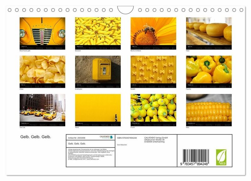 QUALITÄT - Hochwertiger Fotokalender mit 12 wunderschönen Motiven auf lichtbeständigem Bilderdruckpapier, robuste Spiralbindung mit Aufhängebügel.NACHHALTIG - deutliche Abfallreduzierung durch bedarfsgerechte Einzelstückfertigung, umweltfreundliches FSC-zertifiziertes Papier, Produktion in Deutschland, klimabewusste Logistik.PERFEKTES GESCHENK - Kalender für Freunde und Familie, für Kinder und Erwachsene, jung und alt, zu Weihnachten, Geburtstag oder zwischendurch.VIELFALT - Bildkalender in verschiedenen Formaten, z.B. DIN A5, DIN A4, DIN A3 sowie DIN A2. Ob Naturmotiv, Gemälde oder Fotos, ideal für ein persönliches Wohlfühlambiente.Gelb ist die Farbe der Sonne, des Lichts, der Wärme ... aber auch als Signalfarbe im Einsatz. von Autor(in): Gerd Matschek