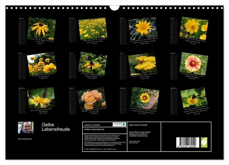 QUALITÄT - Hochwertiger Fotokalender mit 12 wunderschönen Motiven auf lichtbeständigem Bilderdruckpapier, robuste Spiralbindung mit Aufhängebügel.NACHHALTIG - deutliche Abfallreduzierung durch bedarfsgerechte Einzelstückfertigung, umweltfreundliches FSC-zertifiziertes Papier, Produktion in Deutschland, klimabewusste Logistik.PERFEKTES GESCHENK - Kalender für Freunde und Familie, für Kinder und Erwachsene, jung und alt, zu Weihnachten, Geburtstag oder zwischendurch.VIELFALT - Bildkalender in verschiedenen Formaten, z.B. DIN A5, DIN A4, DIN A3 sowie DIN A2. Ob Naturmotiv, Gemälde oder Fotos, ideal für ein persönliches Wohlfühlambiente.Ein Kalender über gelbe Blüten und Zitate voller Lebensfreude von Autor(in): Sven Herkenrath