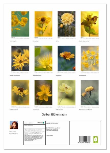 PREMIUM-LINIE - Brillanter Fotokalender mit 12 wunderschönen Motiven, Kunstdruck in Hochglanz in Museumsqualität.QUALITÄT - edle Materialien, stabile Rückwand mit 2 innovativen Einstecktaschen für eine optimale Präsentation an der Wand.NACHHALTIG - deutliche Abfallreduzierung durch bedarfsgerechte Einzelstückfertigung, umweltfreundliches FSC-zertifiziertes Papier, Produktion in Deutschland, klimabewusste Logistik.PERFEKTES GESCHENK - Kalender für Freunde und Familie, für Kinder und Erwachsene, jung und alt, zu Weihnachten, Geburtstag oder zwischendurch.Gelbe frische Blütenfotos verzaubern uns das ganze Jahr von Autor(in): Fotokunst Ulrike Adam