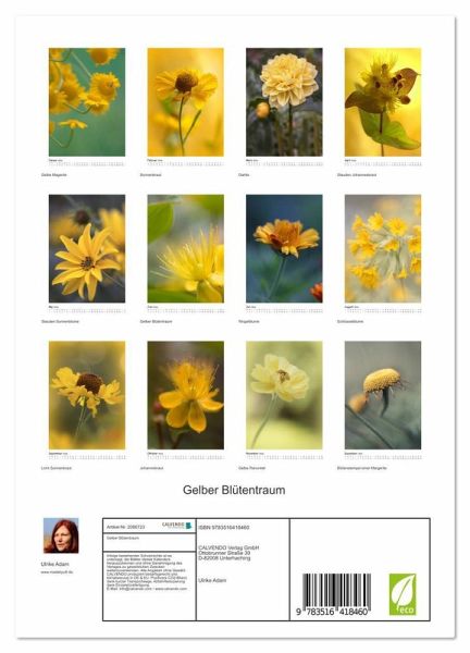 QUALITÄT - Hochwertiger Fotokalender mit 12 wunderschönen Motiven auf lichtbeständigem Bilderdruckpapier, robuste Spiralbindung mit Aufhängebügel.NACHHALTIG - deutliche Abfallreduzierung durch bedarfsgerechte Einzelstückfertigung, umweltfreundliches FSC-zertifiziertes Papier, Produktion in Deutschland, klimabewusste Logistik.PERFEKTES GESCHENK - Kalender für Freunde und Familie, für Kinder und Erwachsene, jung und alt, zu Weihnachten, Geburtstag oder zwischendurch.VIELFALT - Bildkalender in verschiedenen Formaten, z.B. DIN A5, DIN A4, DIN A3 sowie DIN A2. Ob Naturmotiv, Gemälde oder Fotos, ideal für ein persönliches Wohlfühlambiente.Gelbe frische Blütenfotos verzaubern uns das ganze Jahr von Autor(in): Fotokunst Ulrike Adam