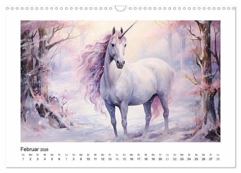 Ein Schimmel mit gewundenem Horn und magischen Kräften, ein gutmütiges Zauberwesen, das so scheu und versteckt lebt, dass man es weder fangen noch sehen kann. So stellen sich die Menschen das Einhorn seit Jahrhunderten vor. Kleine und große Mädchen sind dem Zauber dieses Fabelwesens längst erlegen. Die Autorin hat mit Hilfe der KI zauberhafte Aquarelle geschaffen, die diesen Kalender zu einem wahren Schmuckstück in jedem Mädchenzimmer machen