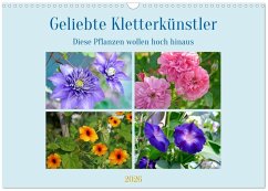 Sie schlingen, ranken, klettern, hangeln: Kletterpflanzen bedecken öde Mauern, streben an Rankhilfen in die Höhe, fungieren als Sichtschutz und Schattenspender. Sie tun das mit Ausdauer, und in Zeiten der Blüte mit oft unglaublicher Form- und Farbenpracht. Damit sind sie echte Lieblinge, die in fast jedem Garten vorkommen. Dieser Kalender zeigt eine gut sortierte Auswahl der vielseitigen Gipfelstürmer in voller Blüte oder zur Erntezeit.