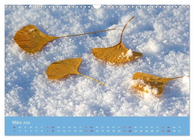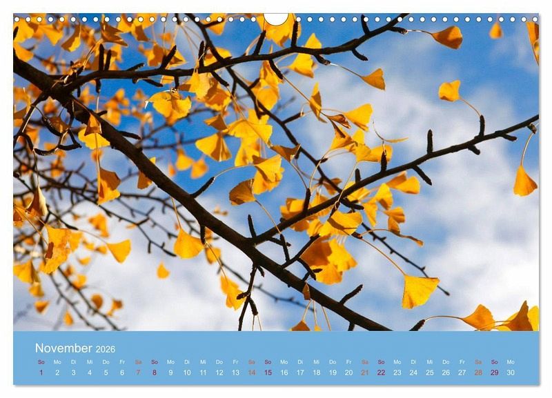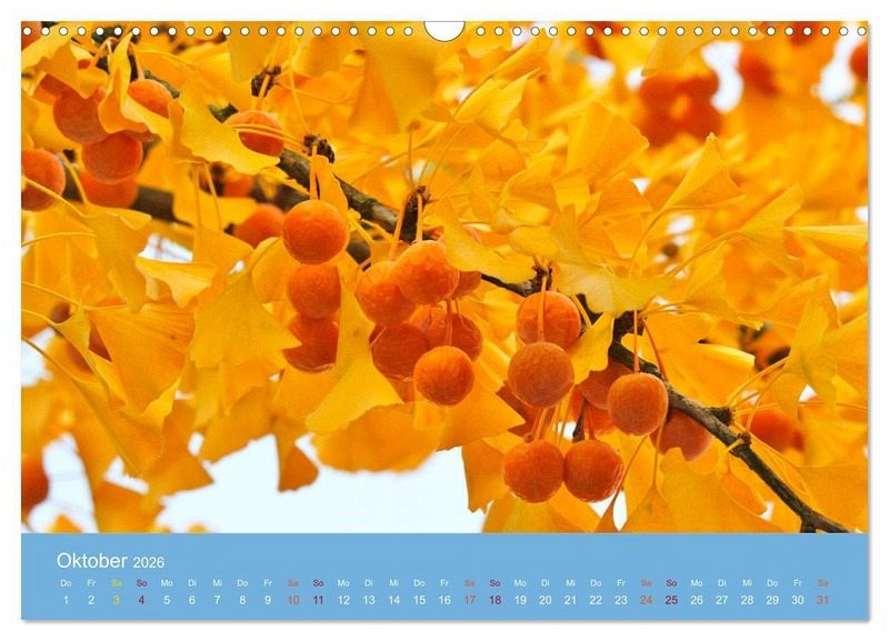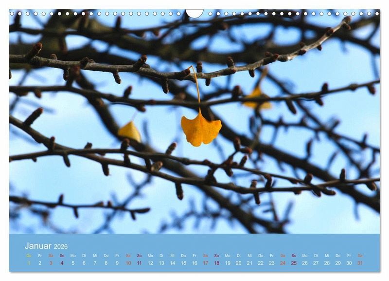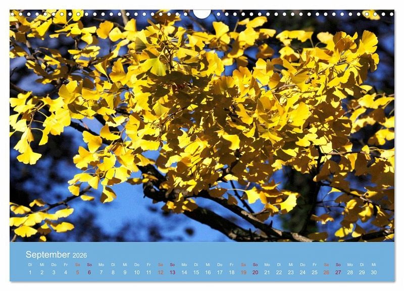 Ein Kalender mit Farbaufnahmen vom Ginkgobaum.