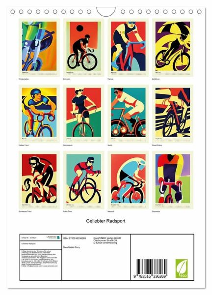 Sie lieben den Radsport? Dann ist dieser Kalender ein Muss. Kunstvolle Grafiken als Momentaufnahmen einer beliebten Sportart, werden auch Ihr Zuhause beleben.