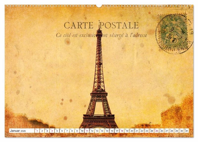 Januar: Der Eiffelturm auf einer antiken Postkarte