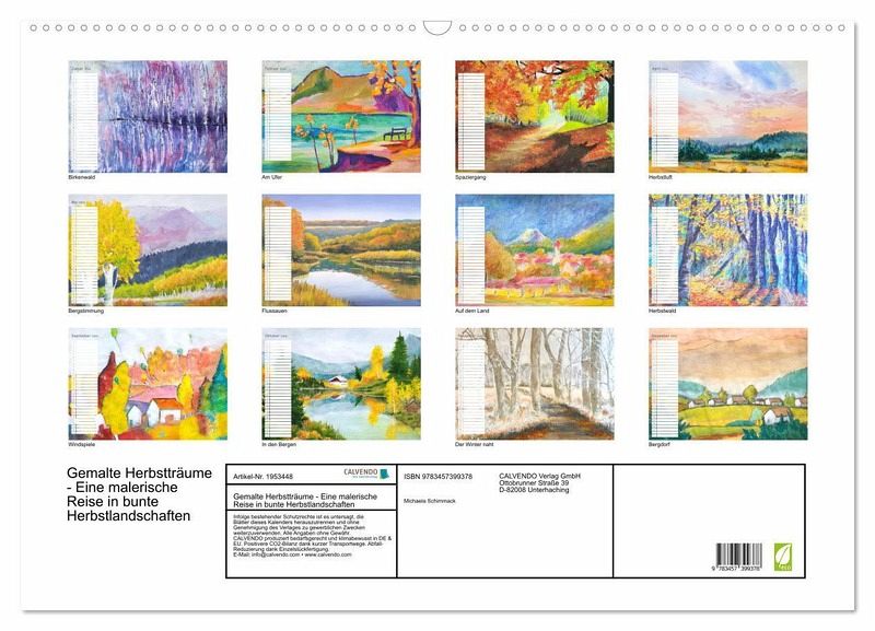 Erleben Sie mit diesem Kalender die zauberhafte Schönheit des Herbstes. Tauchen Sie ein in die warmen Farben und die friedliche Atmosphäre dieser faszinierenden Jahreszeit. Jedes Bild fängt die Magie des Herbstes auf einzigartige Weise ein und bringt die Natur in Ihr Zuhause. Lassen Sie sich von den goldenen Blättern, den malerischen Wäldern und den stillen Seen verzaubern, während Sie durch die Monate dieses Kalenders blättern.