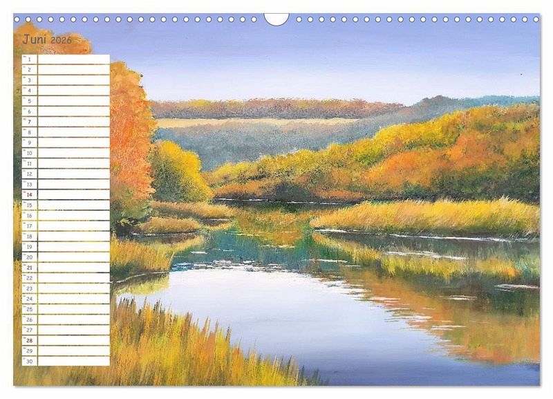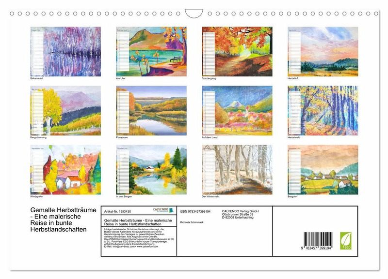 Erleben Sie mit diesem Kalender die zauberhafte Schönheit des Herbstes. Tauchen Sie ein in die warmen Farben und die friedliche Atmosphäre dieser faszinierenden Jahreszeit. Jedes Bild fängt die Magie des Herbstes auf einzigartige Weise ein und bringt die Natur in Ihr Zuhause. Lassen Sie sich von den goldenen Blättern, den malerischen Wäldern und den stillen Seen verzaubern, während Sie durch die Monate dieses Kalenders blättern.