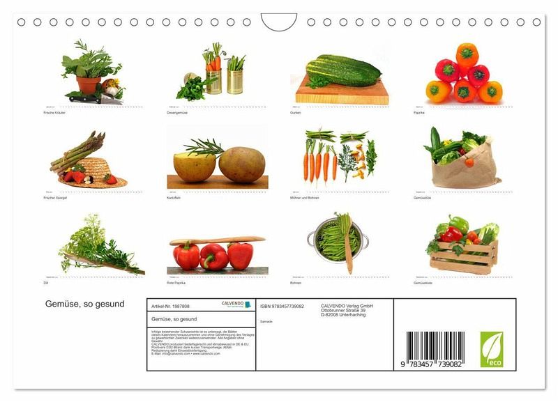 QUALITÄT - Hochwertiger Fotokalender mit 12 wunderschönen Motiven auf lichtbeständigem Bilderdruckpapier, robuste Spiralbindung mit Aufhängebügel.NACHHALTIG - deutliche Abfallreduzierung durch bedarfsgerechte Einzelstückfertigung, umweltfreundliches FSC-zertifiziertes Papier, Produktion in Deutschland, klimabewusste Logistik.PERFEKTES GESCHENK - Kalender für Freunde und Familie, für Kinder und Erwachsene, jung und alt, zu Weihnachten, Geburtstag oder zwischendurch.VIELFALT - Bildkalender in verschiedenen Formaten, z.B. DIN A5, DIN A4, DIN A3 sowie DIN A2. Ob Naturmotiv, Gemälde oder Fotos, ideal für ein persönliches Wohlfühlambiente.Frische Gemüsemotive auf weißem Hintergrund von Autor(in): Sarnade