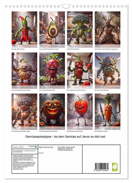 QUALITÄT - Hochwertiger Fotokalender mit 12 wunderschönen Motiven auf lichtbeständigem Bilderdruckpapier, robuste Spiralbindung mit Aufhängebügel.NACHHALTIG - deutliche Abfallreduzierung durch bedarfsgerechte Einzelstückfertigung, umweltfreundliches FSC-zertifiziertes Papier, Produktion in Deutschland, klimabewusste Logistik.PERFEKTES GESCHENK - Kalender für Freunde und Familie, für Kinder und Erwachsene, jung und alt, zu Weihnachten, Geburtstag oder zwischendurch.VIELFALT - Bildkalender in verschiedenen Formaten, z.B. DIN A5, DIN A4, DIN A3 sowie DIN A2. Ob Naturmotiv, Gemälde oder Fotos, ideal für ein persönliches Wohlfühlambiente.In diesen düsteren Kalender verwandelt sich nicht aufgegessenes Gemüse jede Nacht in erschreckende Monster, die durch die Straßen ziehen und die Erde heimsuchen. von Autor(in): Fabian Junge