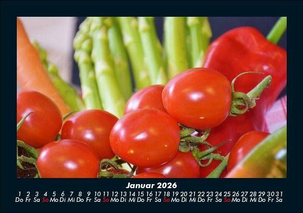 Gemüsekalender 2026 Motivkalender DIN A5 Vero-Kalender erhalten Sie mit Motiven aus den verschiedensten Themenbereichen wie Natur, Blumen und Landschaft, Tierwelt, Architektur, Reise und Urlaub, Technik, Automobil und Eisenbahn, Emotionen, Sport und Musik. Gedruckt werden die Monats-Kalender aus dem Vero Verlag auf hochwertigem Kalenderbogen in Premium-Qualität und verschiedenen Größen. Die Vielfältigkeit der Motive unserer Foto-Kalender ist dank der Zusammenarbeit mit kreativen Fotografen möglich.