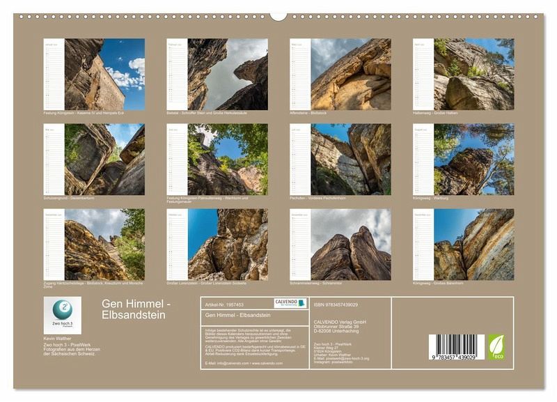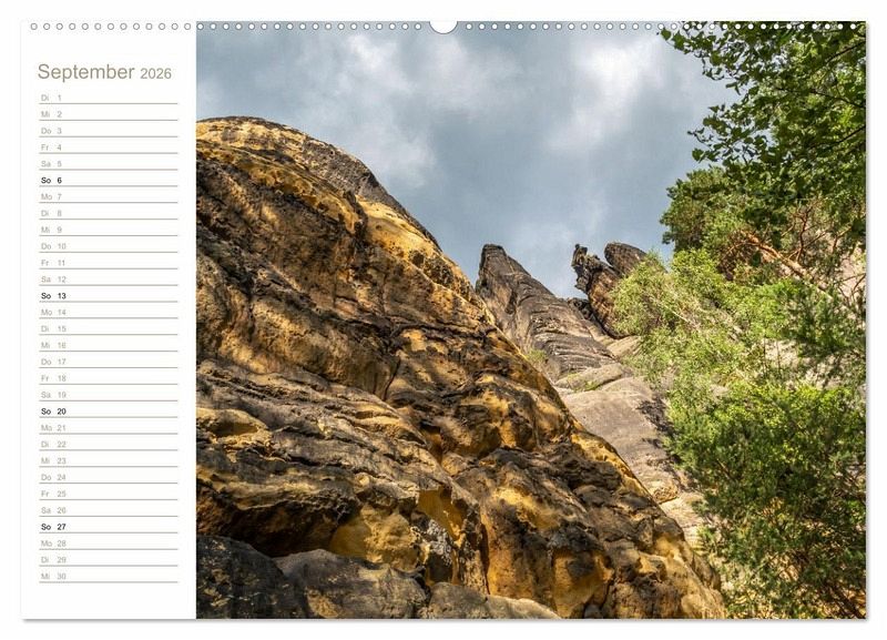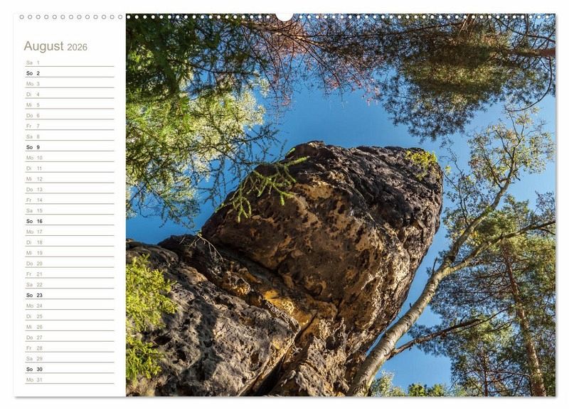 Für Wanderer im Elbsandsteingebirge gibt es viel zu sehen und zu staunen. Eine Blickrichtung kommt dabei oft zu kurz, denn natürlich ist die Konzentration auf den Weg wichtiger als die steile Sicht nach oben. Der Kalender widmet sich daher dieser ungewöhnlichen Perspektive. Sie werden sehen: Es lohnt sich innezuhalten, hinaufzuschauen und sich von Fels- und Baumriesen beeindrucken zu lassen.