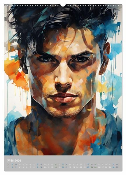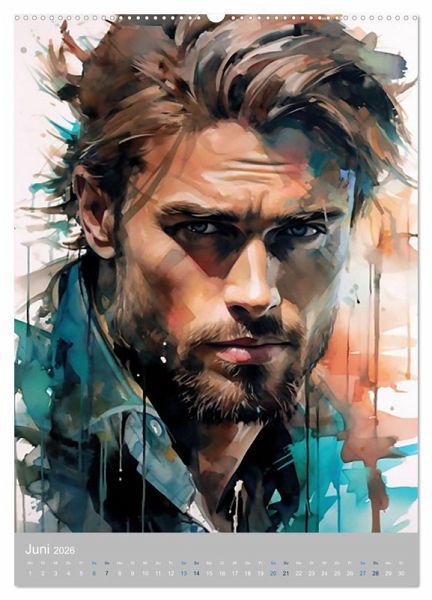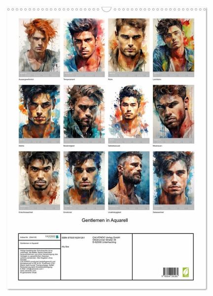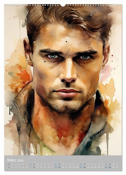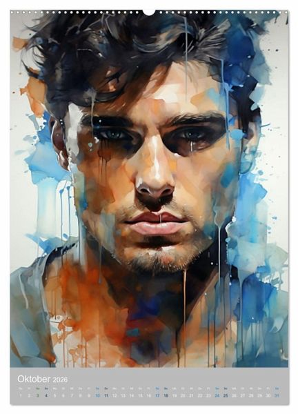 Tauchen Sie ein in eine Welt der männlichen Anmut und zeitloser Eleganz mit diesem Kalender, der die Schönheit von Männerportraits in Aquarell auf einzigartige Weise einfängt.