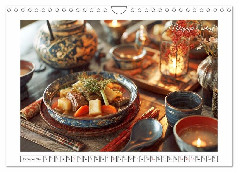 Dieser Kalender präsentiert die faszinierende Welt der japanischen Küche in zwölf köstlichen Motiven - von Sushi und Sashimi bis hin zu Mochi, Onigiri und herzhaften Pfannengerichten. Jedes Bild wurde mit der Hilfe von KI erstellt und fängt die Eleganz, Farbenpracht und Harmonie der traditionellen Speisen ein. Ob als Inspiration oder einfach zum anschauen - dieser Kalender macht jeden Monat zu einem kleinen kulinarischen Highlight. Perfekt für alle, die Japan lieben oder die Vielfalt seiner Spezialitäten entdecken möchten.