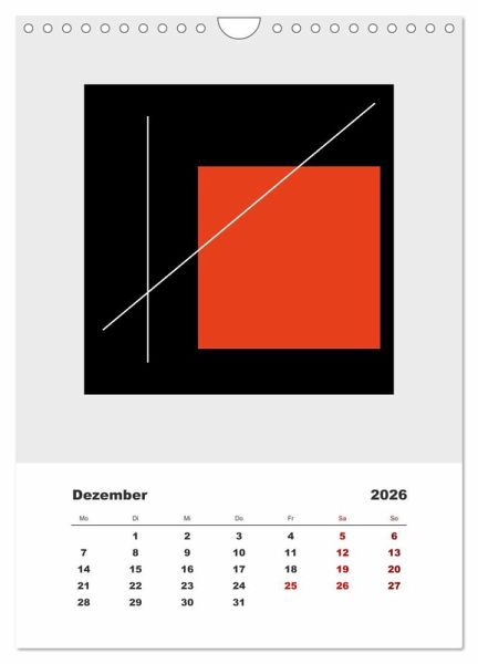 QUALITÄT - Hochwertiger Fotokalender mit 12 wunderschönen Motiven auf lichtbeständigem Bilderdruckpapier, robuste Spiralbindung mit Aufhängebügel.NACHHALTIG - deutliche Abfallreduzierung durch bedarfsgerechte Einzelstückfertigung, umweltfreundliches FSC-zertifiziertes Papier, Produktion in Deutschland, klimabewusste Logistik.PERFEKTES GESCHENK - Kalender für Freunde und Familie, für Kinder und Erwachsene, jung und alt, zu Weihnachten, Geburtstag oder zwischendurch.VIELFALT - Bildkalender in verschiedenen Formaten, z.B. DIN A5, DIN A4, DIN A3 sowie DIN A2. Ob Naturmotiv, Gemälde oder Fotos, ideal für ein persönliches Wohlfühlambiente.Minimale Farben, geometrische Formen. Lassen Sie Ihren Gedanken freien Lauf. von Autor(in): Franco Tessarolo