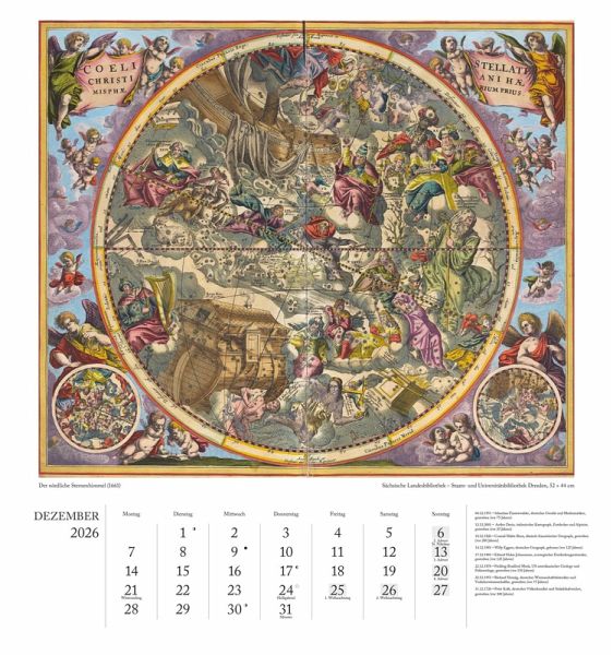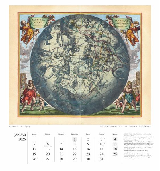 12 historische Figurenkarten in brillanter Druckqualität Mit erläuterndem Textblatt von Bibliotheks-Experten Gedenktage zu Forschern & Entdeckern im Kalendarium Format 45 x 48 cm, stabile Spiralbindung mit Aufhänger Internationales Kalendarium mit Feiertagen für D, A, CH