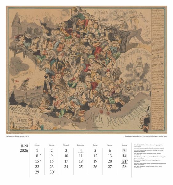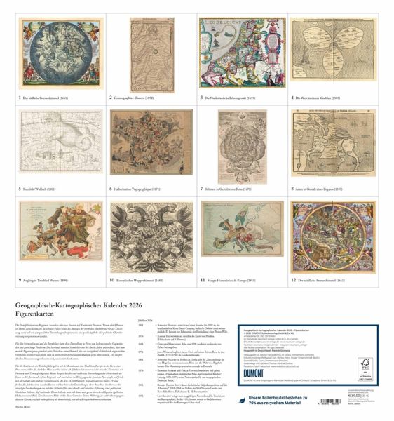 Entdecken Sie faszinierende Kartenkunst: Der DUMONT Geographisch-Kartographische Kalender 2026 widmet sich dem spannenden Thema Figurenkarten und zeigt außergewöhnliche historische Landkarten aus bedeutenden Bibliotheken. Ein Muss für Sammler, Geschichts- und Kartenfans.